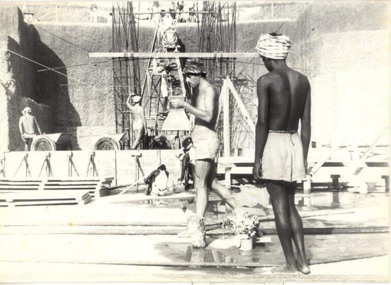 Bij de lunch zaten vooral Nederlanders die al vroeg in de ochtend begonnen waren. Ze stonden bekend als harde werkers. Het beton storten gebeurde meestal ’s nachts omdat het dan koeler was.In 1981 gaf Ruud een klusje aan Martin Schreurs om het beton dat op enkele punten uitstak uit het frame met de hand uit te bikken. Dat kostte Martin 14 dagen bikken. Aan het eind van het werk reciteerde Martin uit de Yoga van de King (Savitri):